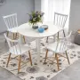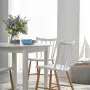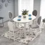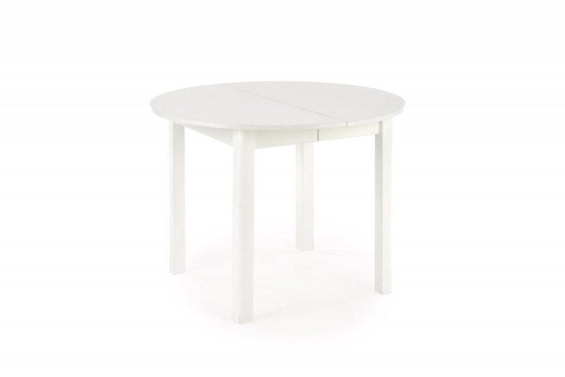 Bílé provedení v kombinaci s dýhou připomínající přírodní dubové dřevo vytváří univerzální základ, který se hladce sladí s jakýmkoli stylem nábytku. Kulatý tvar podporuje přirozenou komunikaci mezi všemi u stolu, vytváří pocit sounáležitosti a zároveň šetří místo v menších prostorech.
