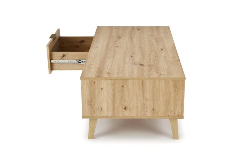 Dub artisan není náhoda. Je to pečlivě vybraný dekor, který spojuje přirozený vzhled dřeva s praktičností moderních materiálů. Výsledek? Stolek, který vypadá jako ze stylového designového časopisu, ale zvládne běžný každodenní provoz bez problémů.