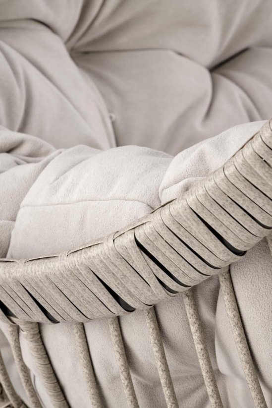 Sedněte si. Opřete se do velkého, měkkého polštáře ve světlé šedé barvě, který vás obejme jako nejmilejší přítel. Speciálně profilovaný tvar sedáku včetně designové stříšky chrání před prudkým sluncem i nečekaným mrholením. Skutečný ráj pro vaše tělo i duši.