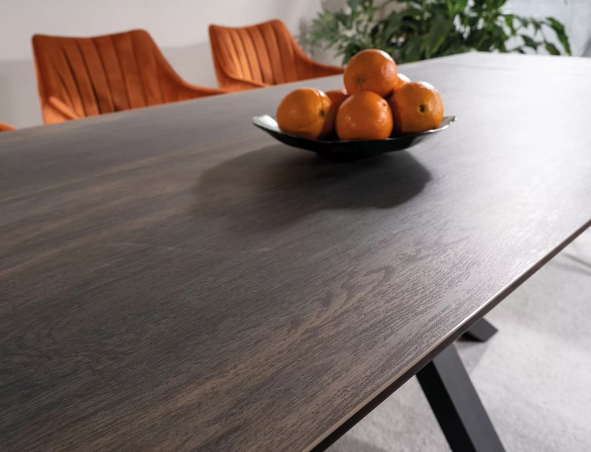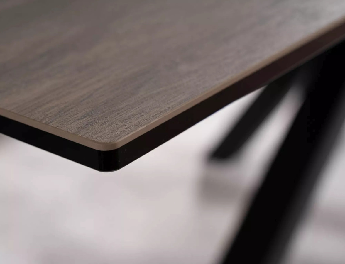 Představte si stůl, který se přizpůsobí každé situaci. Klidné rodinné snídaně, pracovní videohovory, nedělní obědy s návštěvou – Columbus Ceramic zvládne všechno. Jeho obdélníková deska z prémiové španělské keramiky v teplém hnědém odstínu Legno v kombinaci s matně černou kovovou podstavou vytváří nadčasový vzhled, který okamžitě povýší každou jídelnu či obývací pokoj.