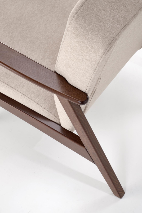 Křeslo MILANO 1S není další sériový kus z lisovaných hoblin. Je to poctivá řemeslná práce – masivní buková konstrukce lakovaná v odstínu tmavého ořechu, která přináší do vašeho domova teplo a charakter, jaký umělé materiály nikdy nedokáží napodobit.