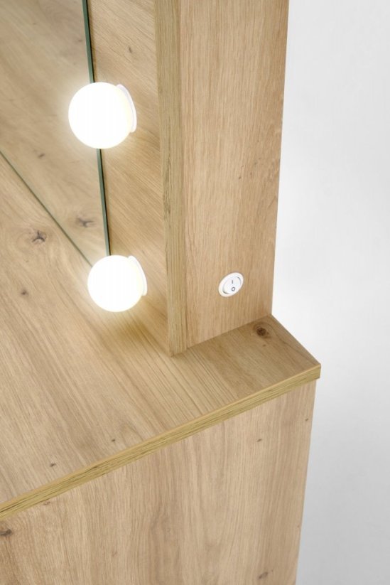 1. Osvětlení hodné hvězd Zapomeňte na stíny a nedostatečné světlo. Opravdové líčení vyžaduje dokonalé podmínky – proto je po obvodu velkého zrcadla rozmístěno LED osvětlení, které vám dodá pocit, že jste právě v šatně filmové hvězdy. Uvidíte každý detail, každý tah štětcem bude přesný. Už žádné překvapení po odchodu z domova! Vaše make-up bude vypadat přesně tak, jak jste ho zamýšlela.