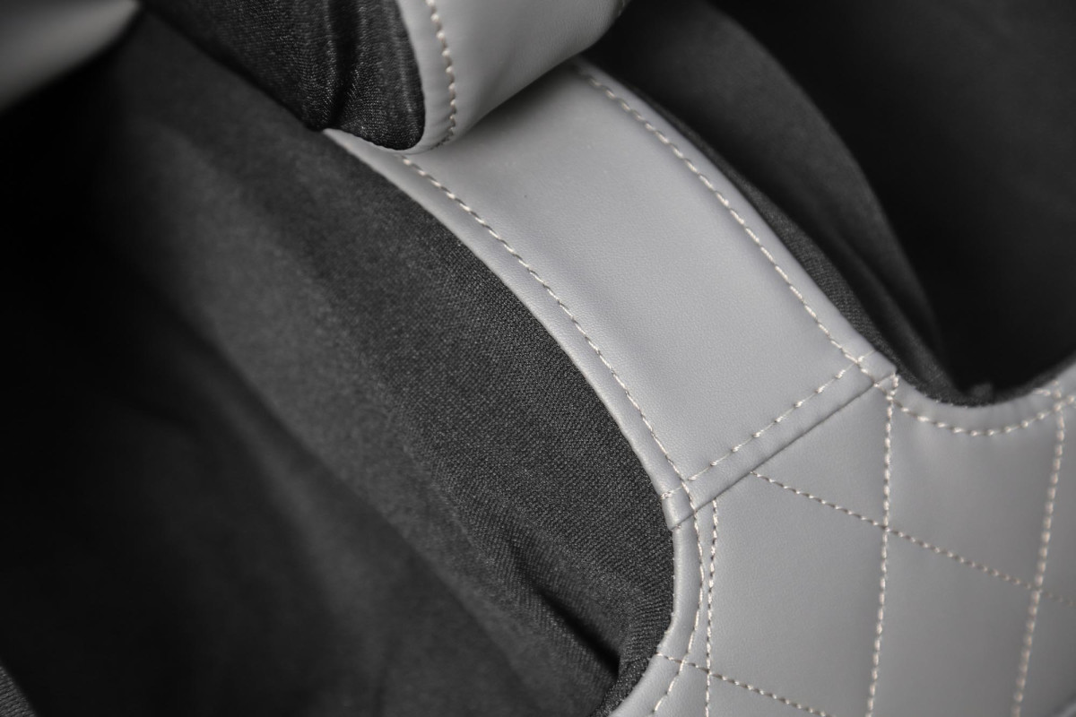Potah z kvalitní eko kůže v elegantní krémově-šedé kombinaci je příjemný na dotek, odolný a snadno se udržuje – stačí otřít vlhkým hadříkem. Moderní design křesla se hladce začlení do každého interiéru.
