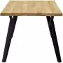 Masivní kovové nohy ve tvaru "Y" nejen zajišťují maximální stabilitu, ale také dodávají stolu odvážný, sofistikovaný nádech. Tato kombinace dřeva a kovu je dokonalým spojením přírodního a moderního designu.