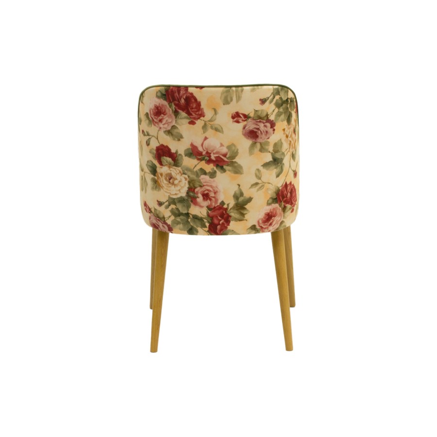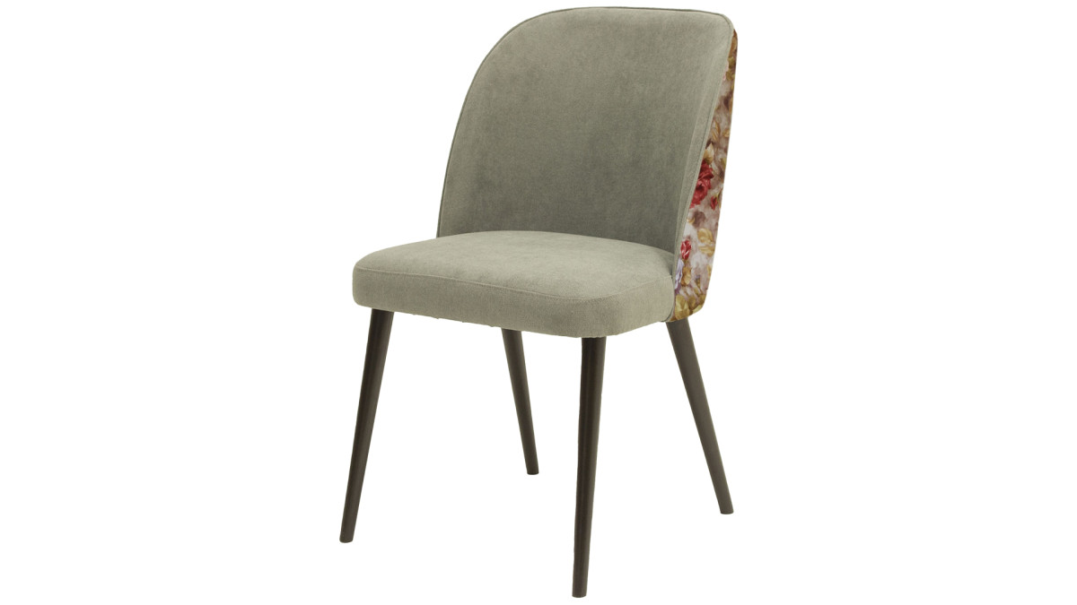 Tato židle láme všechna pravidla designu – a právě proto je tak neodolatelná. Zatímco sedák a vnitřní opěrák září v elegantních jednobarevných látkách MONOLITH nebo luxusním MAGIC VELVET, zadní opěrák vás překvapí bujarými květovanými vzory látek 082 nebo 025.