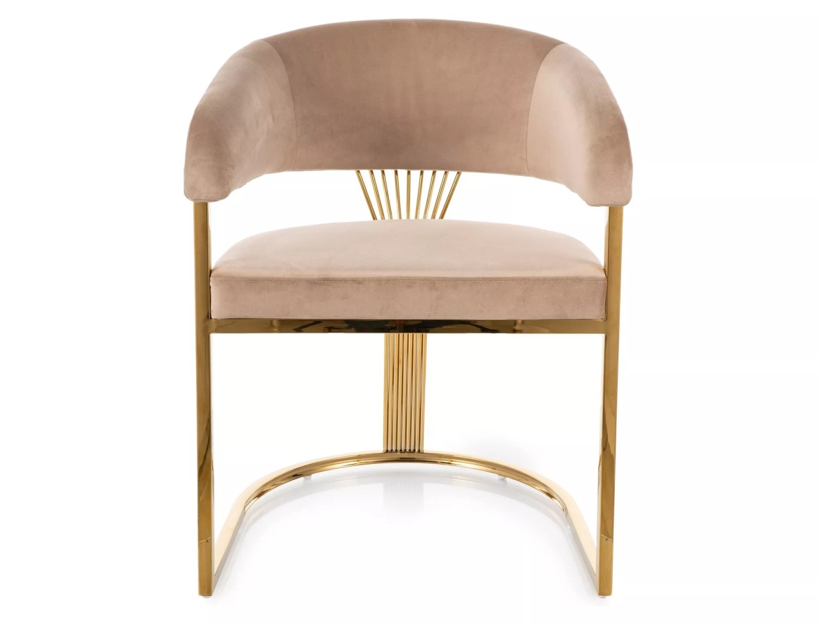 Konstrukce z nerezové oceli ve zlatém provedení není kompromis. Je to důkaz, že jste člověk s vkusem. Zlaté prvky dokonale harmonizují s béžovým sametem a vytváří kombinaci, která funguje v moderním interiéru stejně dobře jako v klasicky zařízeném prostoru. Tento kontrast přitahuje pohledy, ale nikdy nepůsobí křiklavě.