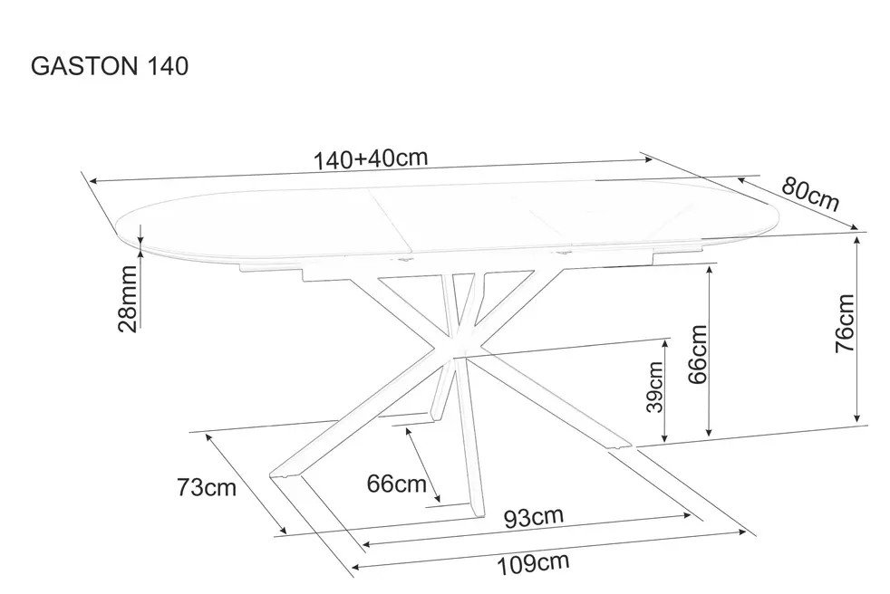 Robustní kovová konstrukce v matné černé barvě je zárukou, že stůl zůstane pevný a stabilní za všech okolností — ať už jej používáte na každodenní stolování nebo při velkých rodinných setkáních.