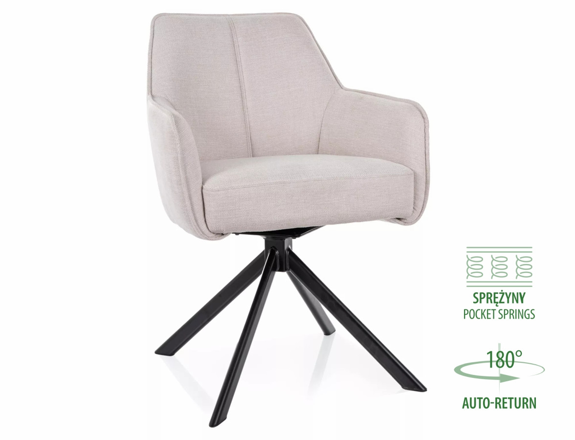 Otočný sedák s rozsahem 180° vám dává naprostou volnost pohybu. Otočíte se za rozhovorem, za výhledem z okna nebo jednoduše za pohodlnější pozicí – a díky funkci automatického návratu se křesílko vždy samo vrátí do původní polohy. Žádné posouvání, žádné narovnávání. Vše funguje přesně tak, jak má.