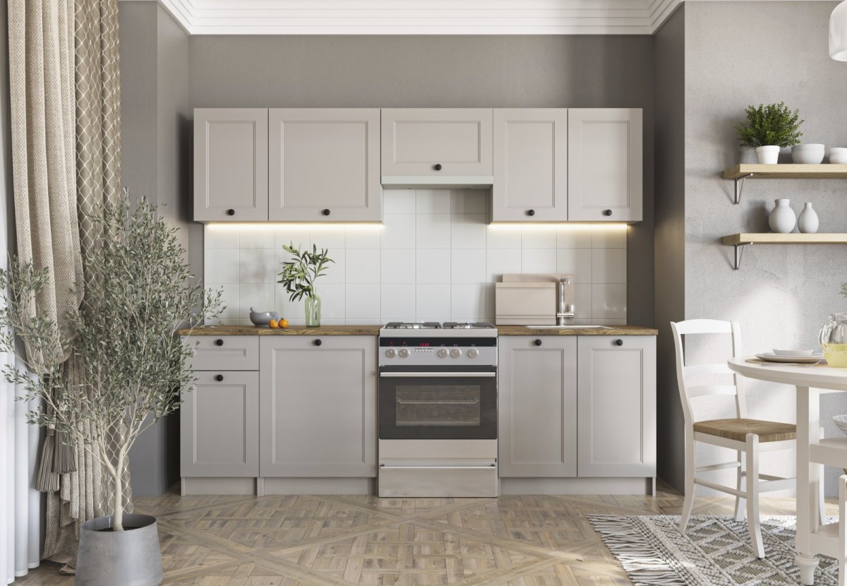 Nenechte se omezovat kompromisy mezi designem a funkčností. Dopřejte si kuchyň, která bude skutečným srdcem vašeho domova – kuchyňskou sestavu VIVIAN 240 kašmír.