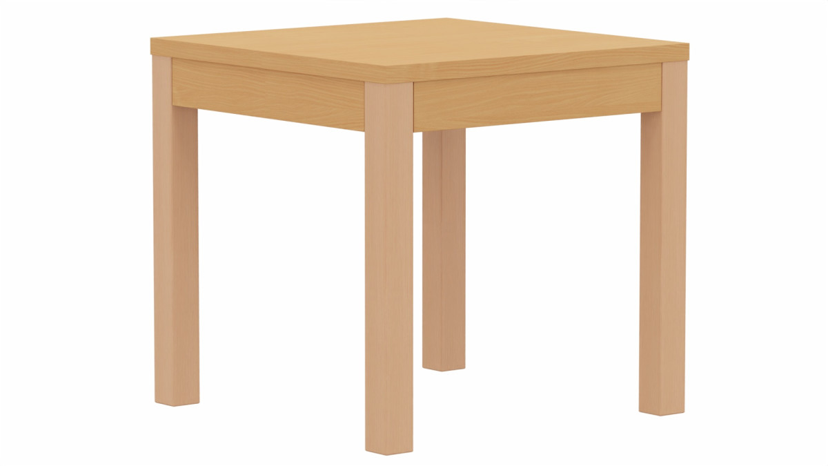 Rozměry desky: 80x80 cm Výška stolu: 76,5 cm Rozměry nohou: 7x7 cm Materiál desky: Odolná laminovaná deska s možností výběru dekoru Materiál nohou: Masivní bukové dřevo Kapacita: 2-4 osoby Využití: Domácnost, restaurace, kavárny, kanceláře
