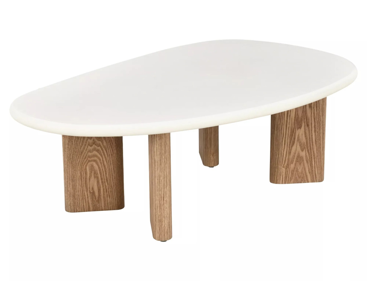 Dominantou stolu je jeho atypicky tvarovaná deska. Zapomeňte na přísné linie; ALPEN sází na jemné křivky inspirované oblázky a přírodní krajinou. Tento „organic design“ nejen skvěle vypadá, ale je také praktický – absence ostrých rohů je bezpečná pro děti a usnadňuje pohyb v menších interiérech.