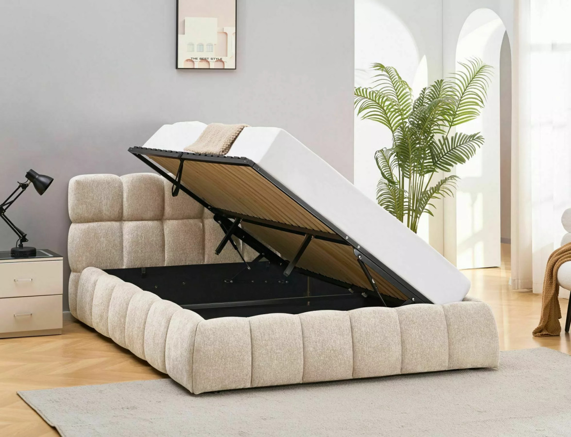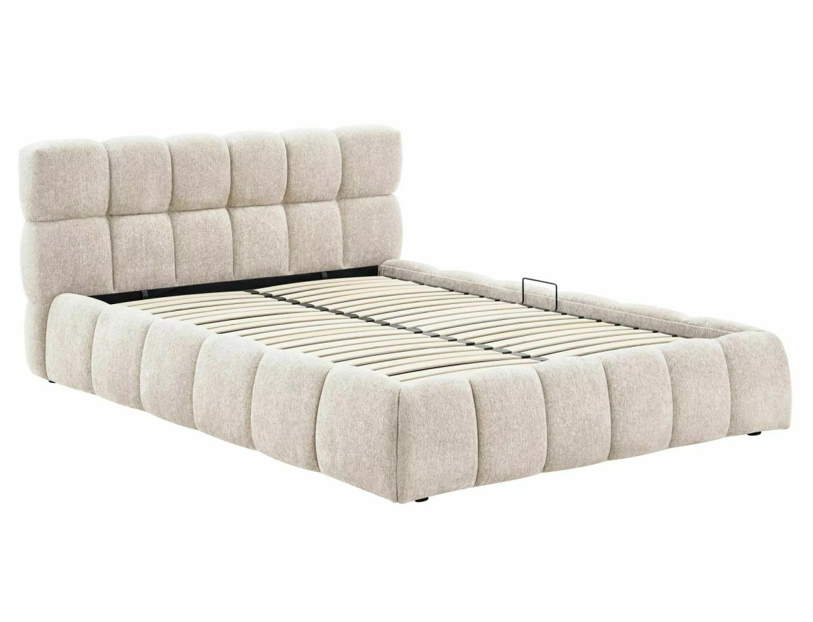 Elegantní čalouněná postel v nadčasovém béžovém odstínu látky Raven okamžitě povýší vzhled celé vaší ložnice. Jemná strukturovaná tkanina je příjemná na dotek a snadno se udržuje.