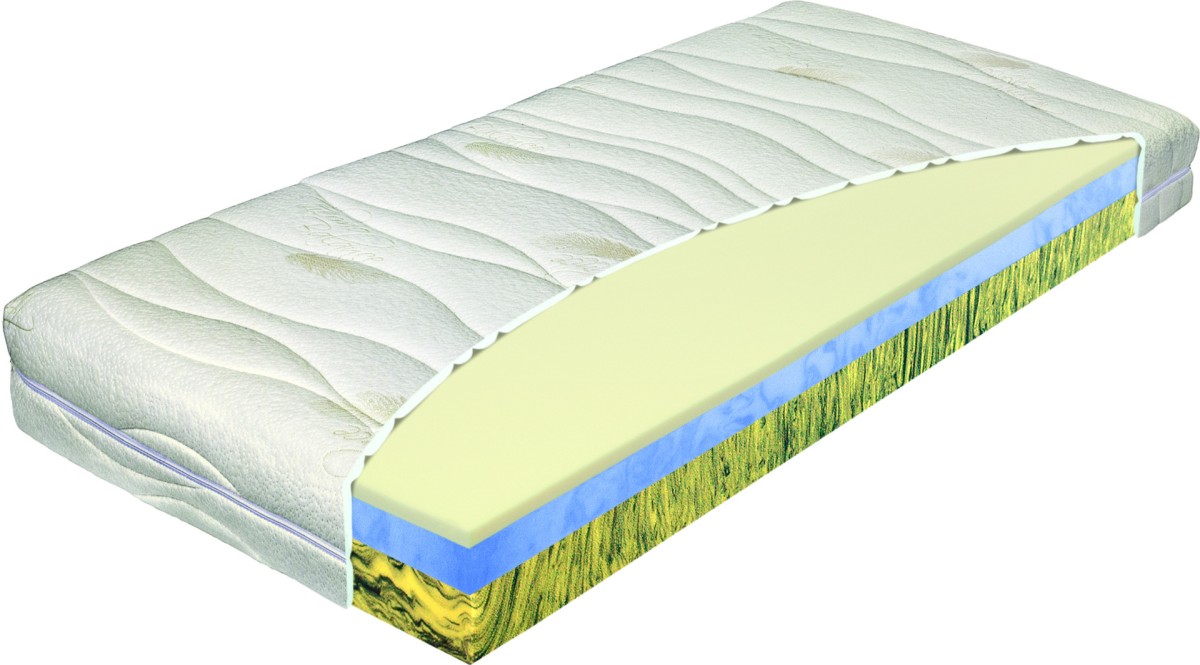 střední deska - prodyšná pěna OXYGEN (otevřená struktura buněk - velkou část toho, co matrace "vdechne" vzápětí "vydechne", takže nedochází k hromadění vlhkosti a škodlivin v jádru matrace; dosažení suchého klimatu je zárukou správné hygieny v matraci a vynikající termoregulace)
