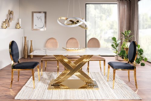Ak túžite po interiéri, ktorý sa vymyká štandardu, HERMES je vaša voľba. Tento stôl dokonale zapadne do kuchyne, jedálne alebo vstupnej haly a vytvorí atmosféru, ktorú budú všetci obdivovať. V kombinácii so stoličkami QUEEN VELVET alebo KING VELVET získate harmonický celok, ktorý dýcha luxusom a rafinovanosťou.