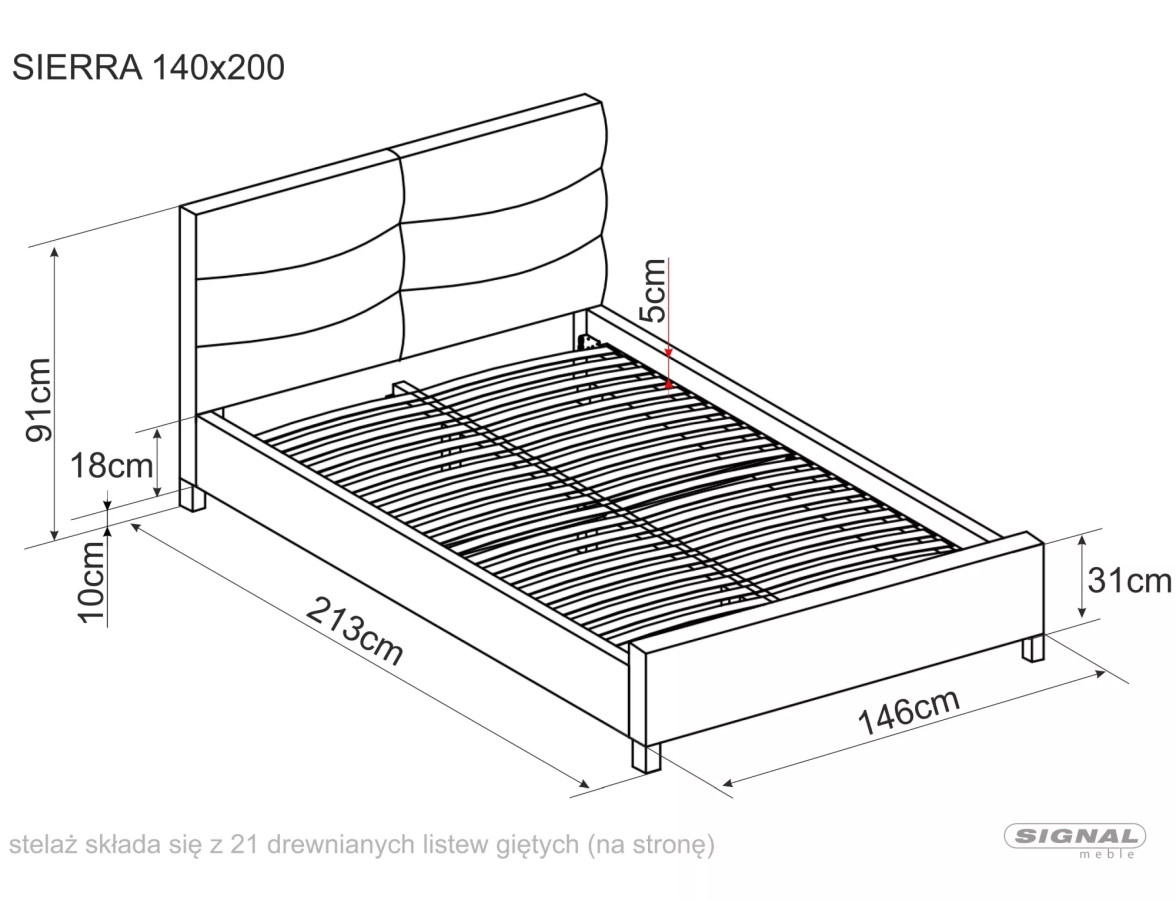 Posteľ je navrhnutá pre štandardný matrac 140 × 200 cm – kompatibilná s väčšinou dostupných matracov na trhu. (Cena je uvedená bez matraca.)