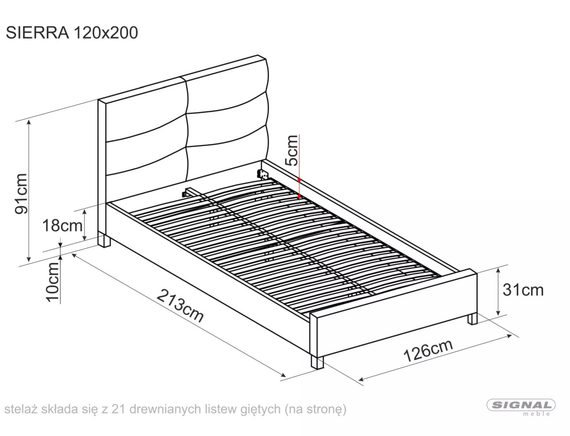 Posteľ SIERRA nie je len o vzhľade. V balení nájdete kompletný lamelový rošt z ohýbaných lamiel uložených v pružných držiakoch. To znamená, že vaše telo dostane správnu oporu presne tam, kde ju potrebuje – bez akýchkoľvek dodatočných nákladov na rošt.