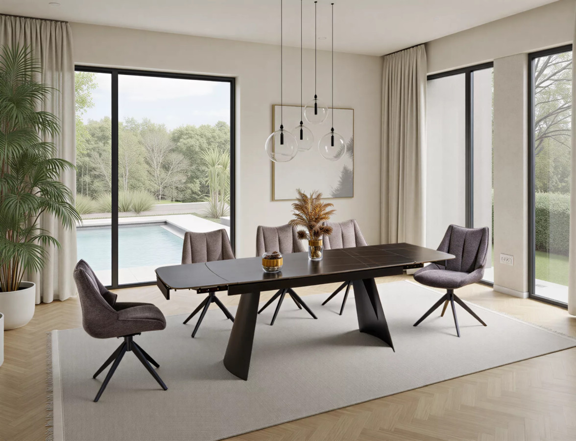 Hmotnosť 112,5 kg a masívny kovový rám v čiernej farbe znamenajú jediné – tento stôl stojí ako skala. Žiadne kývanie. Žiadne vŕzganie. Len pevný základ pre každé jedlo, každú oslavu, každý okamih strávený s blízkymi.