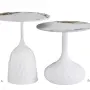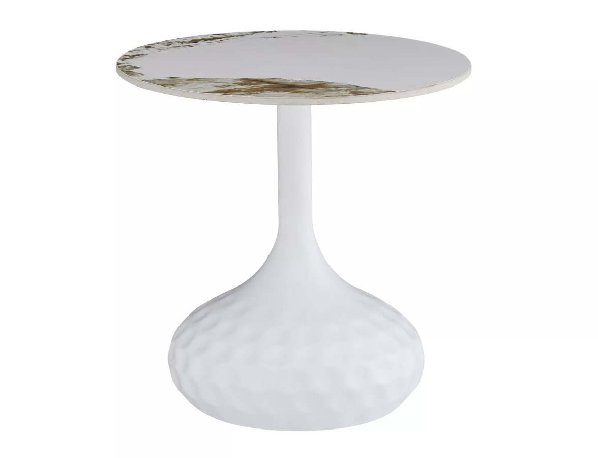 Rozmery: Výška 49 cm, Priemer 50 cm Materiál: Keramický blat (efekt mramoru, biely vysoký lesk), kovová konštrukcia (biela matná)