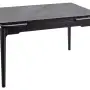 Masívny drevený steláž v čiernej matnej úprave vytvára dokonalý kontrast s lesklým keramickým blatom. Táto kombinácia pôsobí moderne, nadčasovo a luxusne. Drevená konštrukcia zaisťuje maximálnu stabilitu – stôl sa nechveje, nevrže a vydrží každodenné zaťaženie. Výška 75 cm je ergonomicky optimálna pre pohodlné sedenie pri jedle či práci.
