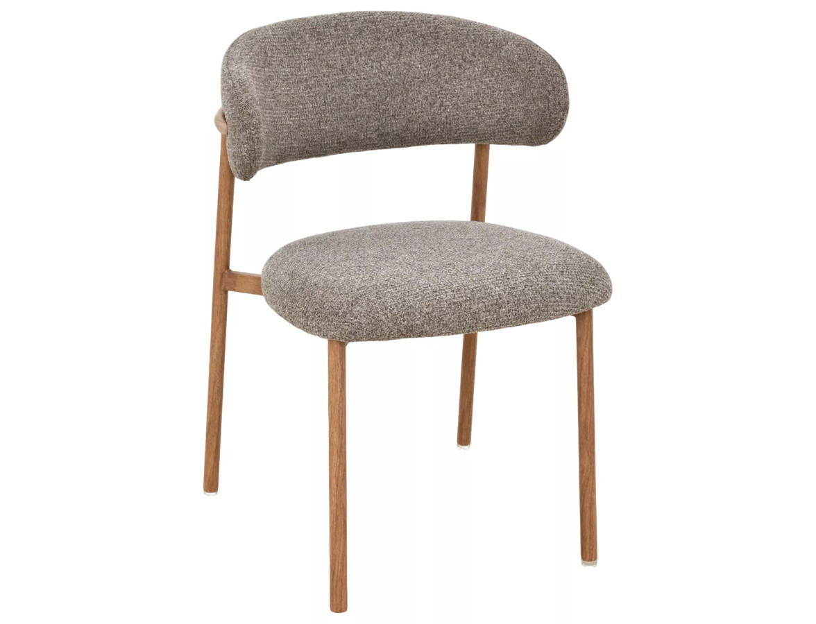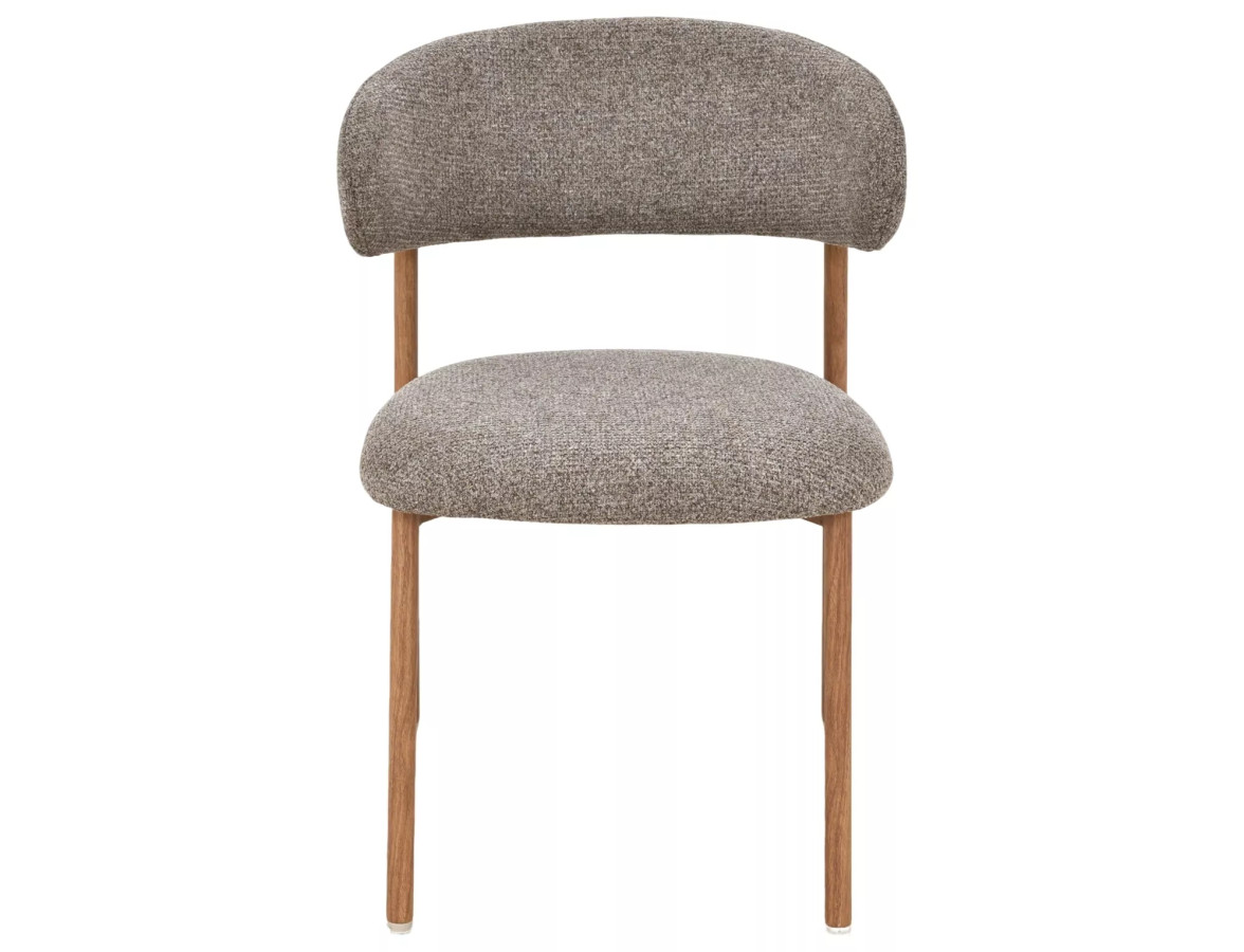 Jedálenská stolička ELTON II je dokonalým príkladom toho, ako môže byť jednoduchosť krásna. Jej organické, zaoblené tvary čalúneného sedadla a operadla v kombinácii s teplým dubovým dekorom kovového rámu vytvárajú harmonický celok plný elegancie a útulnosti. Odtieň cappuccino s jemnou štruktúrou textílie dodáva stoličke prirodzený, sofistikovaný vzhľad, ktorý skvele zapadne do každého moderného interiéru.