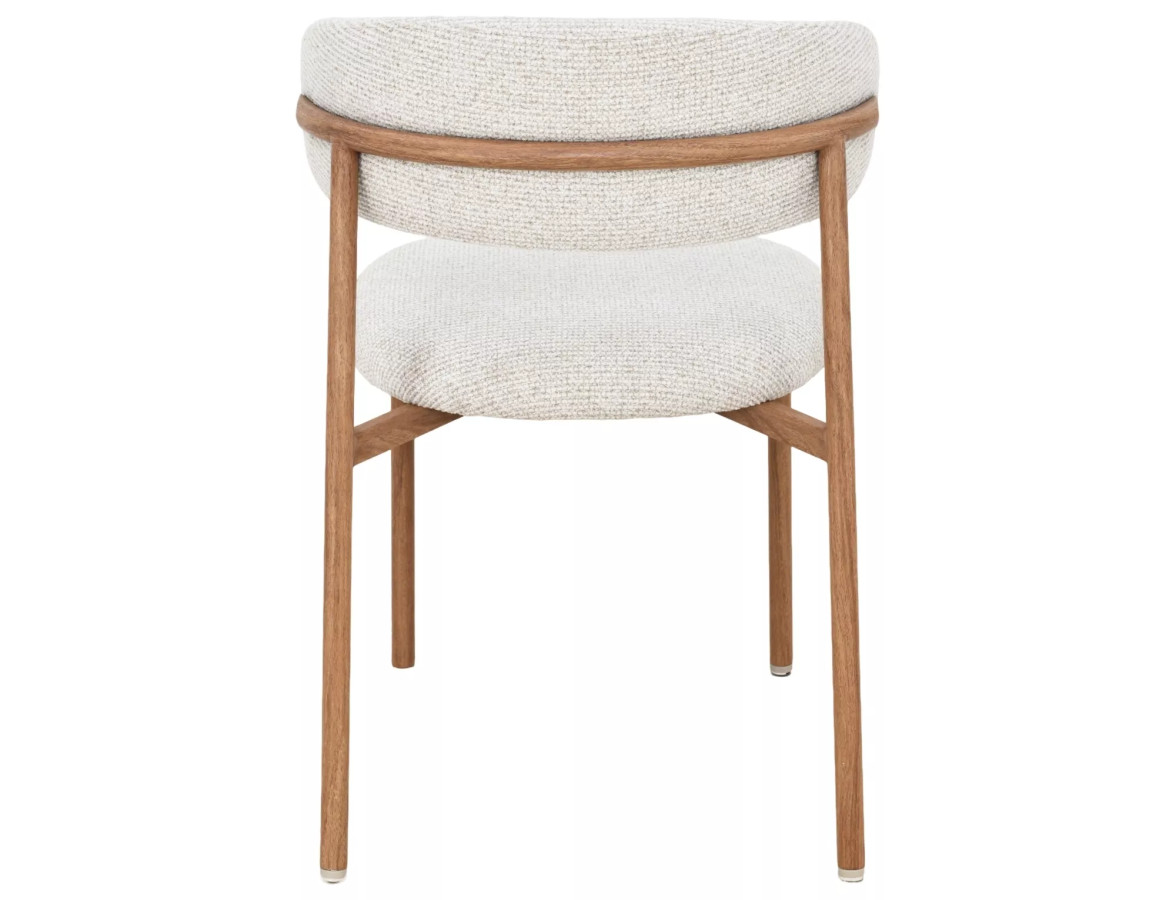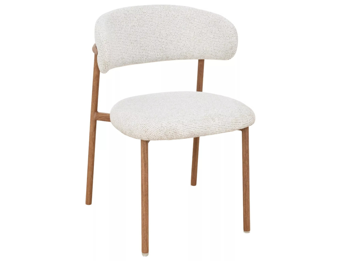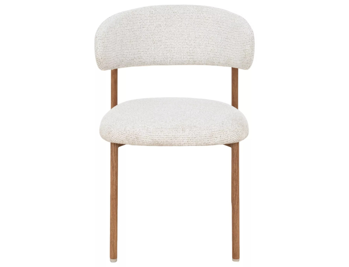 Jedálenská stolička ELTON II je dokonalým príkladom toho, ako môže byť jednoduchosť krásna. Jej organické, zaoblené tvary čalúneného sedadla a operadla v kombinácii s teplým dubovým dekorom kovového rámu vytvárajú harmonický celok plný elegancie a útulnosti. Odtieň svetlo béžovej s jemnou štruktúrou textílie dodáva stoličke prirodzený, sofistikovaný vzhľad, ktorý skvele zapadne do každého moderného interiéru.