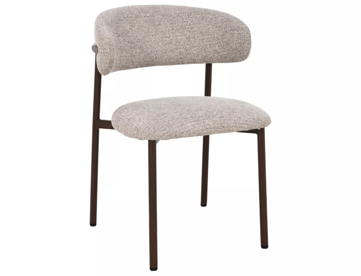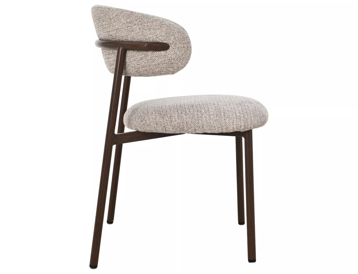 Jedná sa o modernú, elegantnú jedálenskú stoličku s čistými líniami a jemným retro nádychom. Fotografiu je nafotená na bielom pozadí v trojštvrťovom pohľade, takže je dobre viditeľná ako predná, tak aj bočná strana.