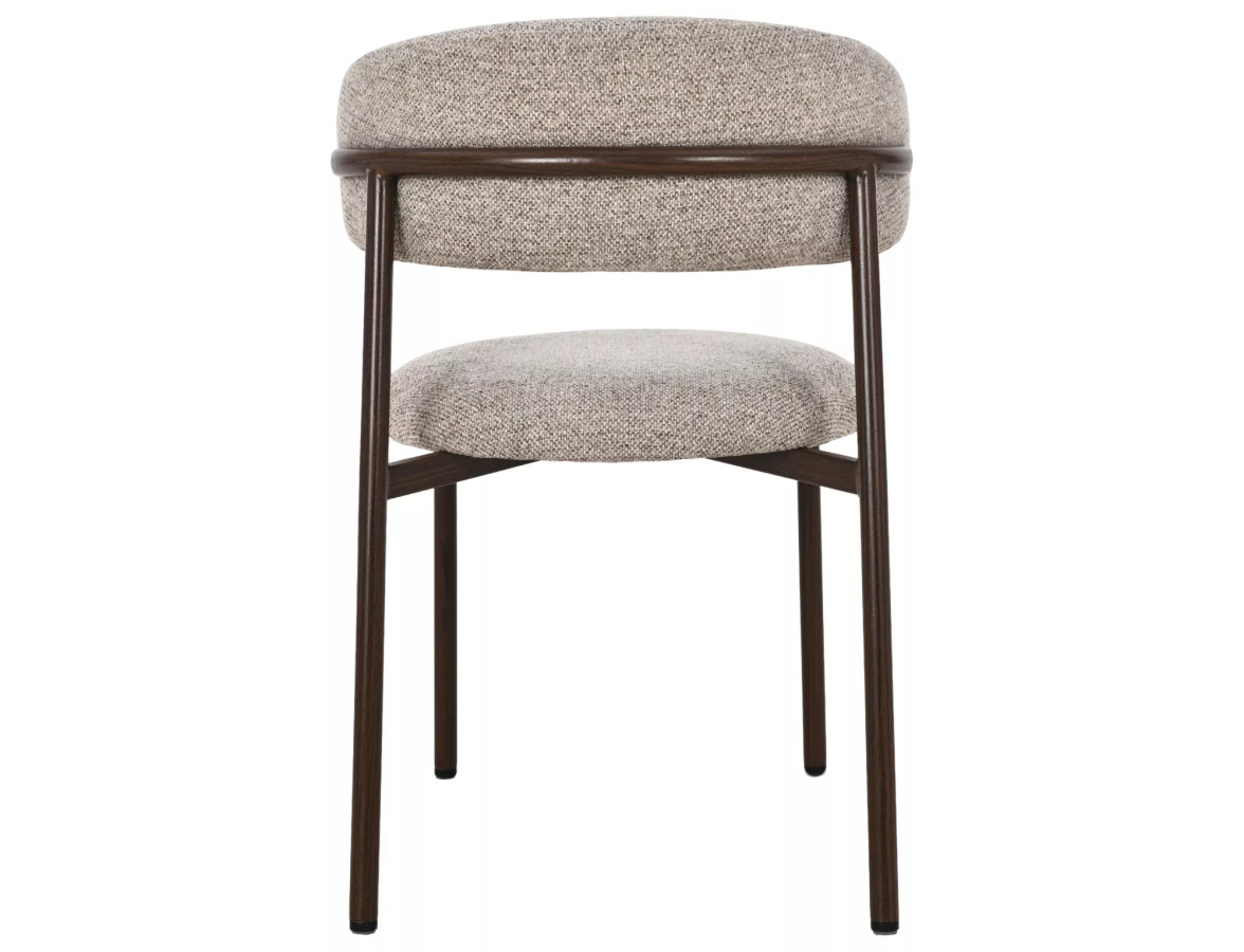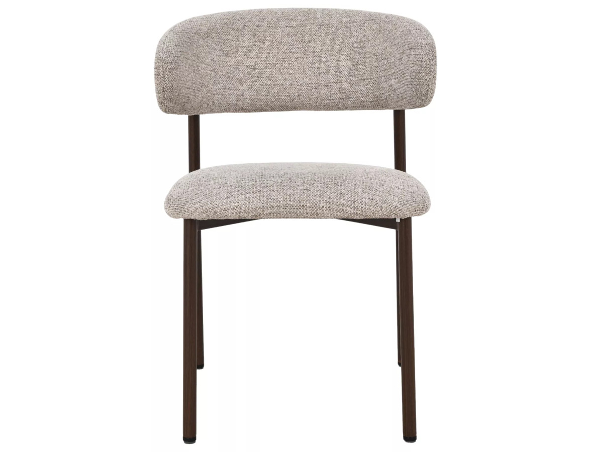- Rám je tvorený štyrmi štíhlymi kovovými nohami v tmavo hnedej farbe, ktorá napodobňuje odtieň orechového dreva