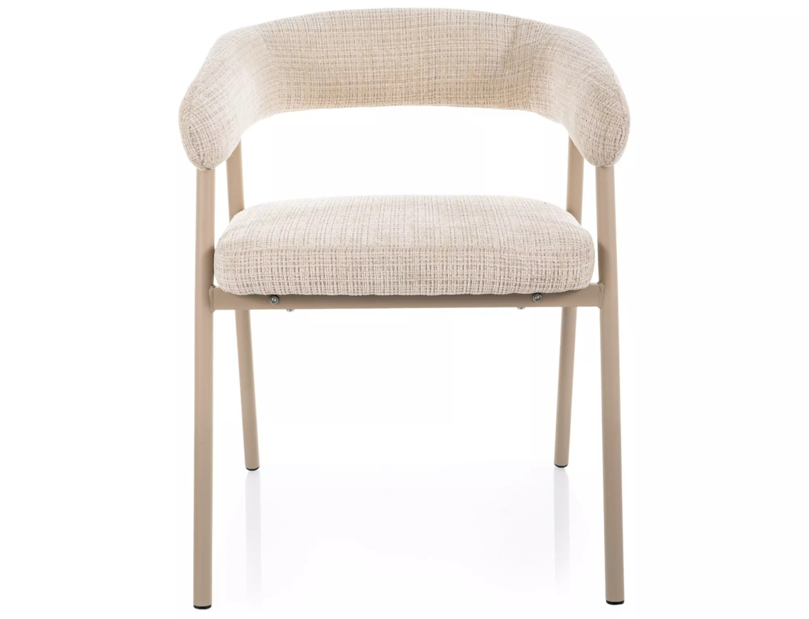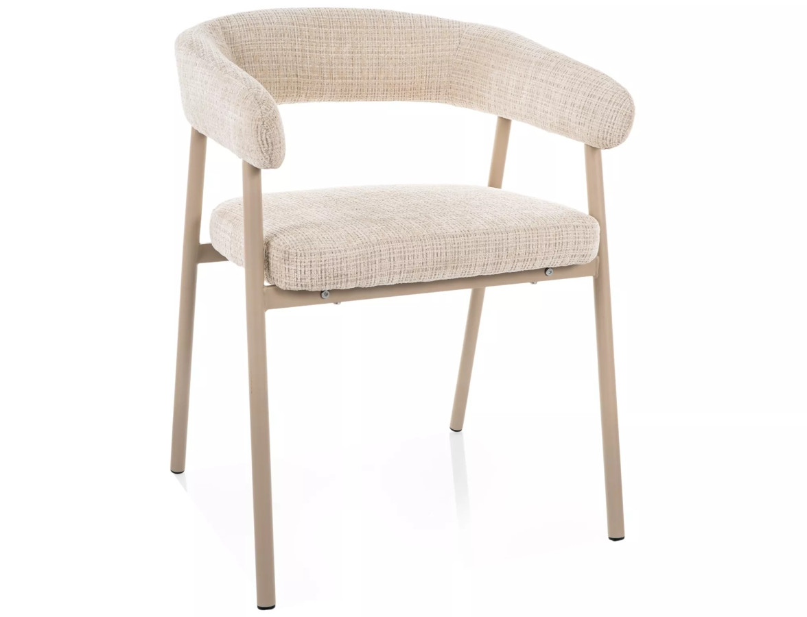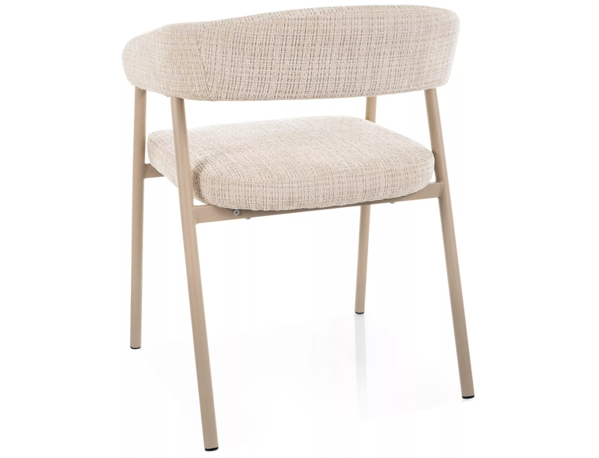Stolička KATANA je dokonalou kombináciou minimalistického dizajnu a nadčasovej elegancie. Jej zaoblená opierka chrbta s plynulými krivkami evokuje japonskú estetiku – čistotu línií, jednoduchosť a precíznosť. Béžový textúrovaný čalúnený povrch dodáva teplo a útulnosť, zatiaľ čo matné čierne kovové nohy pridávajú celej konštrukcii moderný a industriálny nádych.