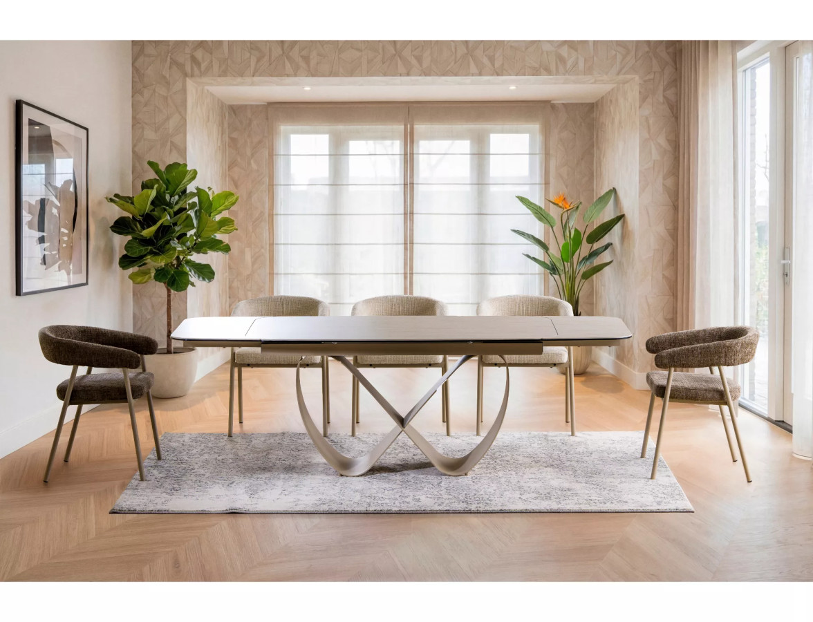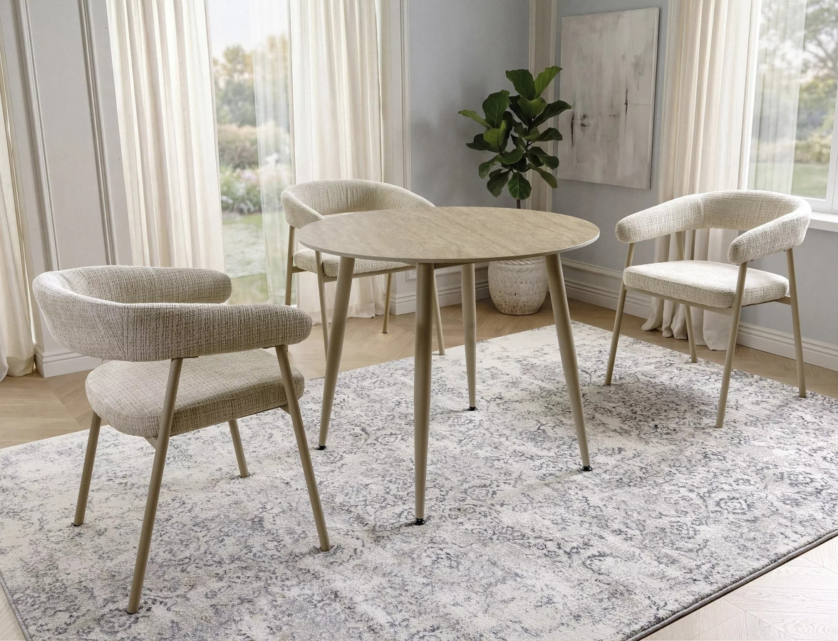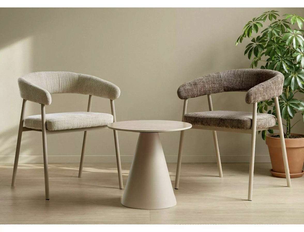 Stolička KATANA je dokonalou kombináciou minimalistického dizajnu a nadčasovej elegancie. Jej zaoblená opierka chrbta s plynulými krivkami evokuje japonskú estetiku – čistotu línií, jednoduchosť a precíznosť. Béžový textúrovaný čalúnený povrch dodáva teplo a útulnosť, zatiaľ čo matné čierne kovové nohy pridávajú celej konštrukcii moderný a industriálny nádych.