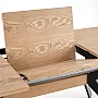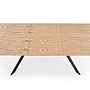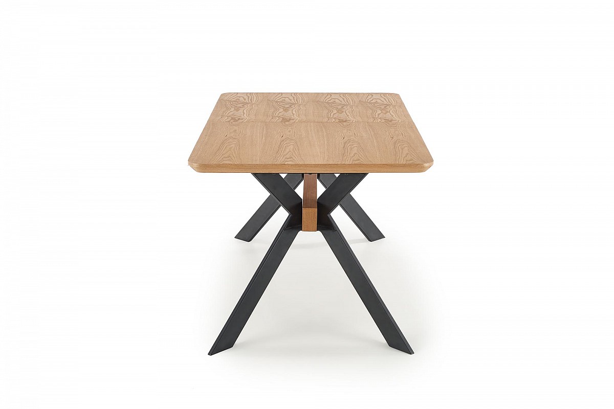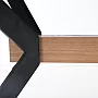 Moderná kombinácia prírodnej dubovej dyhy a čiernej práškovo lakovanej ocele vytvára dokonalú harmóniu medzi prírodou a priemyselným dizajnom. Jedinečná podnož s dvoma kovovými prvkami skríženými dohromady a spojenými dreveným trámom v farbe stolovej dosky dodá vášmu interiéru charakter a originalitu, ktorú nenájdete v žiadnom bežnom obchode.